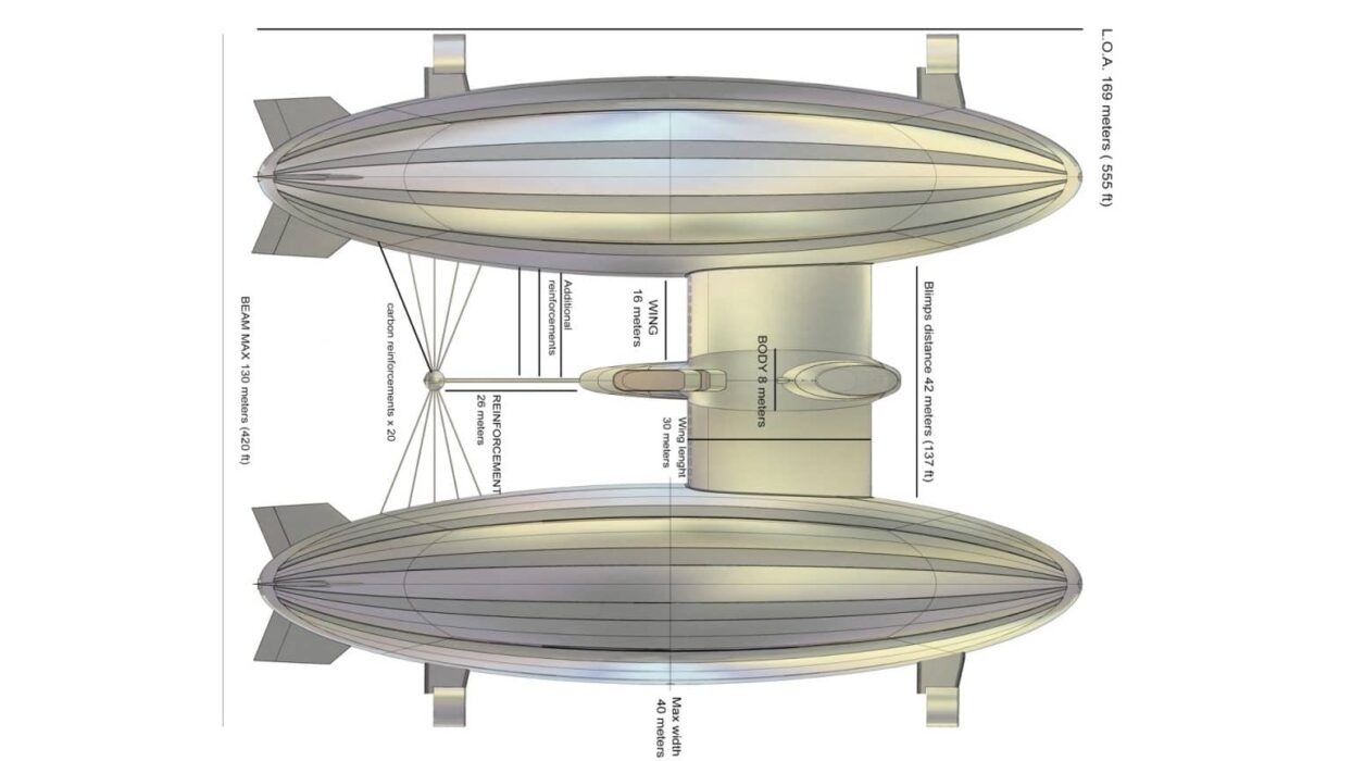 Así como su primera versión, el Air Yacht V2 cuenta con dirigibles gemelos llenos de helio, baterías ligeras, paneles de energía solar y motores eléctricos rotativos de casi 1000 caballos cada uno.