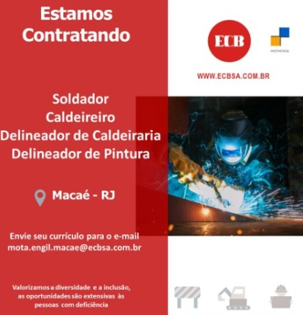 La ECB, empresa perteneciente al grupo Mota Engil en Macaé, ciudad ubicada en Río de Janeiro (RJ), está con vacantes de empleo offshore y onshore destinadas a soldador, calderero, pintor, operador de arco y mucho más. La candidatura para el proceso selectivo se realiza mediante el correo electrónico de la institución, donde el candidato debe informar sus formas de contacto actualizadas: mota.engil.macae@ecbsa.com.br.