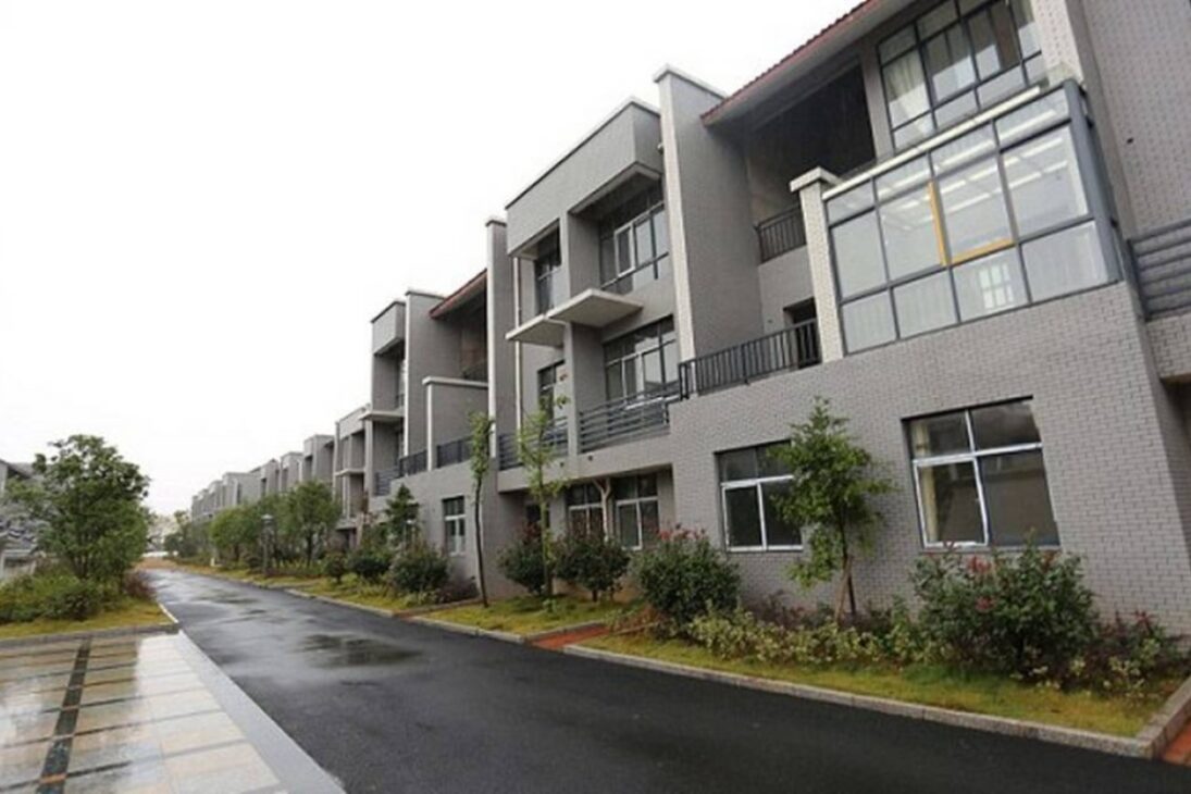 Según registros de People’s Daily Online y Xinhua, el proyecto preveía la construcción de 18 bloques residenciales con 72 casas adosadas de tres pisos, cada una con más de 200 metros cuadrados.