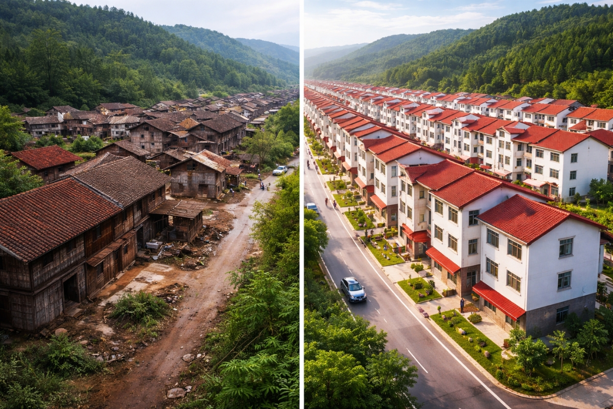 El plan incluía un modelo mixto: familias de bajos ingresos, especialmente las atendidas por el sistema de “cinco garantías” del gobierno chino, recibieron las casas de forma totalmente gratuita, mientras que otras familias contribuyeron con 30 mil yuanes (cerca de R$ 22 mil en la cotización actual).