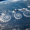 Fenómeno atmosférico raro titulado «calle de vórtices de von Kármán» forma espirales de nubes con simetría casi perfecta