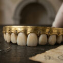 Estructura de la prótesis combinaba dientes humanos reales y franja de oro moldeada