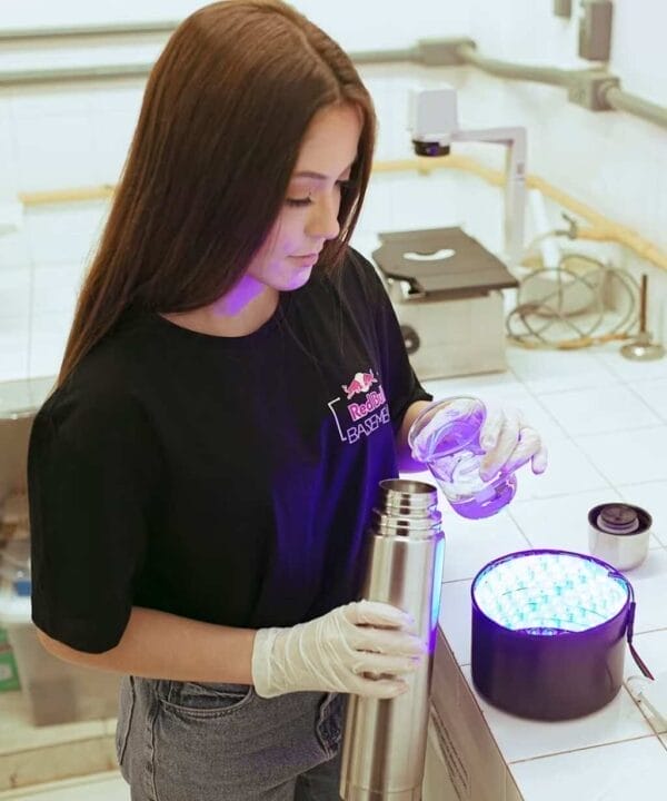 Bárbara Paiva, ingeniera ambiental y estudiante del Programa de Ingeniería de Materiales (Redemat) de la UFOP, diseñó una botella que utiliza radiación solar para filtrar, esterilizar y enfriar el agua. Su proyecto, llamado «Aqualux», representó a Brasil en la final del Red Bull Basement University, donde recibió un premio. energía