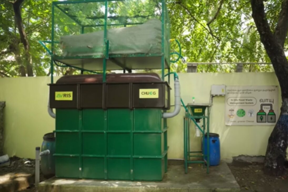 En la escuela pública de la Avenida Kamaraj, en Adyar, ROKA apoyó la implementación de una unidad in situ para residuos alimentarios.