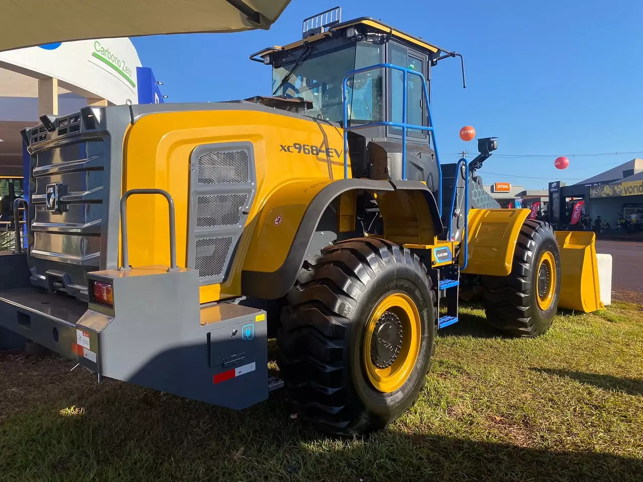 XCMG Brasil también lanza la XC968-EV, la primera cargadora de ruedas 100% eléctrica. Con un diseño moderno, cuenta con tres motores eléctricos que accionan conjuntamente el sistema hidráulico y los ejes de tracción delantero y trasero. «Esto resulta en diferenciales únicos, como respuesta rápida, bajo ruido, bajo consumo de energía y emisión cero de carbono», explica Ricardo Senda.