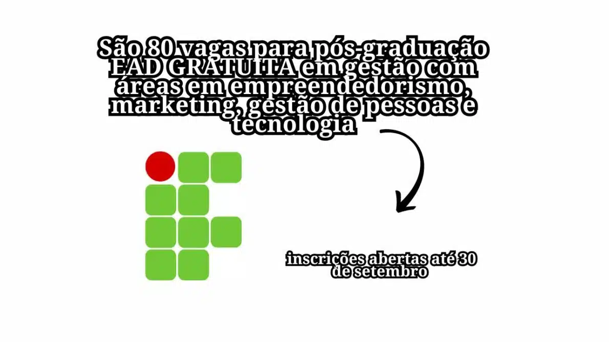 Las inscripciones cierran el 30 de septiembre y deben hacerse a través de un formulario online disponible en el sitio del IF. No hay trampa: solo inscribirse, hacer la prueba y, si eres aprobado, comenzar tu posgrado EAD GRATUITO en gestión!