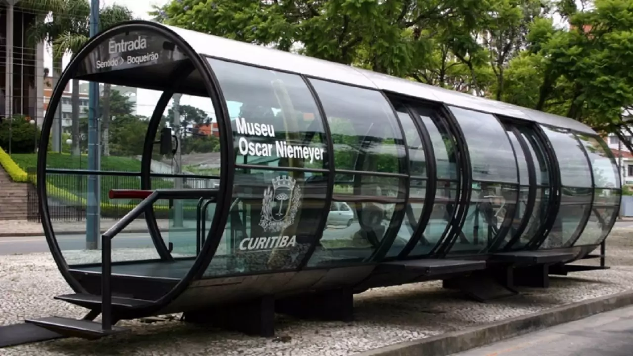 Postales de Curitiba, paradas de autobuses para biarticulados, conocidas como estaciones-tubo, entran en fase de pruebas para producir energía a través del uso de paneles fotovoltaicos de energía solar, tras la asociación entre la municipalidad y la universidad