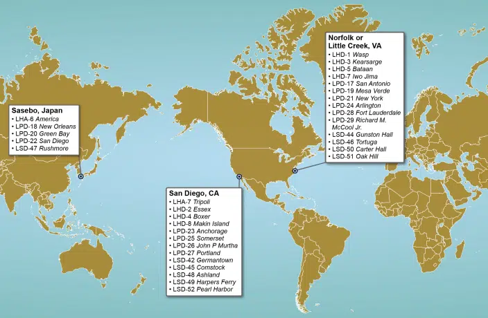 Compuesta por 32 barcos de asalto anfibio (LHD/LHA), barcos de desembarque (LSD) y muelles de transporte anfibio (LPD), la flota enfrenta problemas que comprometen su función de transporte de infantes de marina, aeronaves y otros vehículos en operaciones globales.