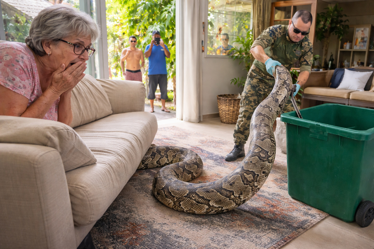 Anciana encuentra una boa gigante de 3 metros y casi 10 kg debajo del sofá de su casa, en Búzios.