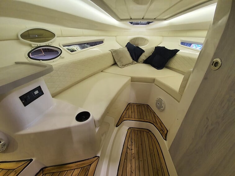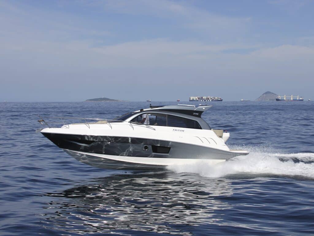 El Triton 370 HT es excelente para la navegación en mares y ríos. El modelo, clásico con un toque de deportividad, cuenta con hardtop, similar al techo solar, con apertura eléctrica. Cuando está cerrado, proporciona un ambiente adicional amplio con altura de 1,85 metros, pero abierto es ideal para disfrutar de días soleados. Su exterior cuenta con amplios espacios de ocio y comidas, además de una zona para tomar el sol. Con acabados impecables, el interior tiene baño, dos cabinas para pasar la noche, área de estar y cocina.