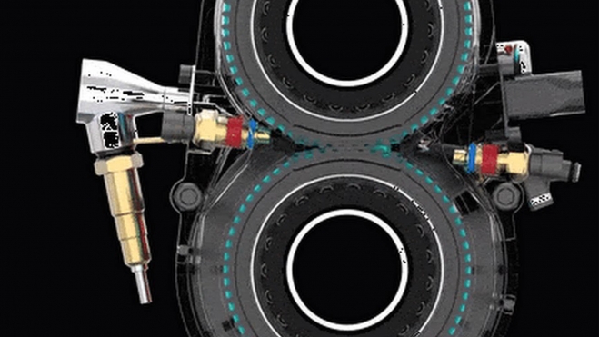 El H2 Starfire elimina el tradicional sistema de pistones, sustituyéndolo por dos ejes que giran en direcciones opuestas.