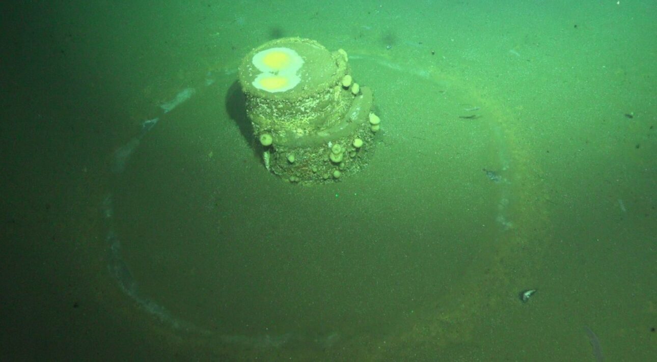 Las imágenes mostraban tambores corroídos, parcialmente enterrados en los sedimentos, algunos de ellos rodeados por extrañas manchas claras en el suelo marino.