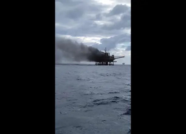 ACTUALIZACIÓN 10H 17min. Informaciones preliminares reportan que un hombre cayó al mar y fue rescatado, los otros 176 trabajadores están bien. Las primeras imágenes circulan en las redes sociales y muestran el momento del incendio, seguido por la propagación del humo a gran escala. No se sabe aún si fue de hecho una explosión en la unidad.