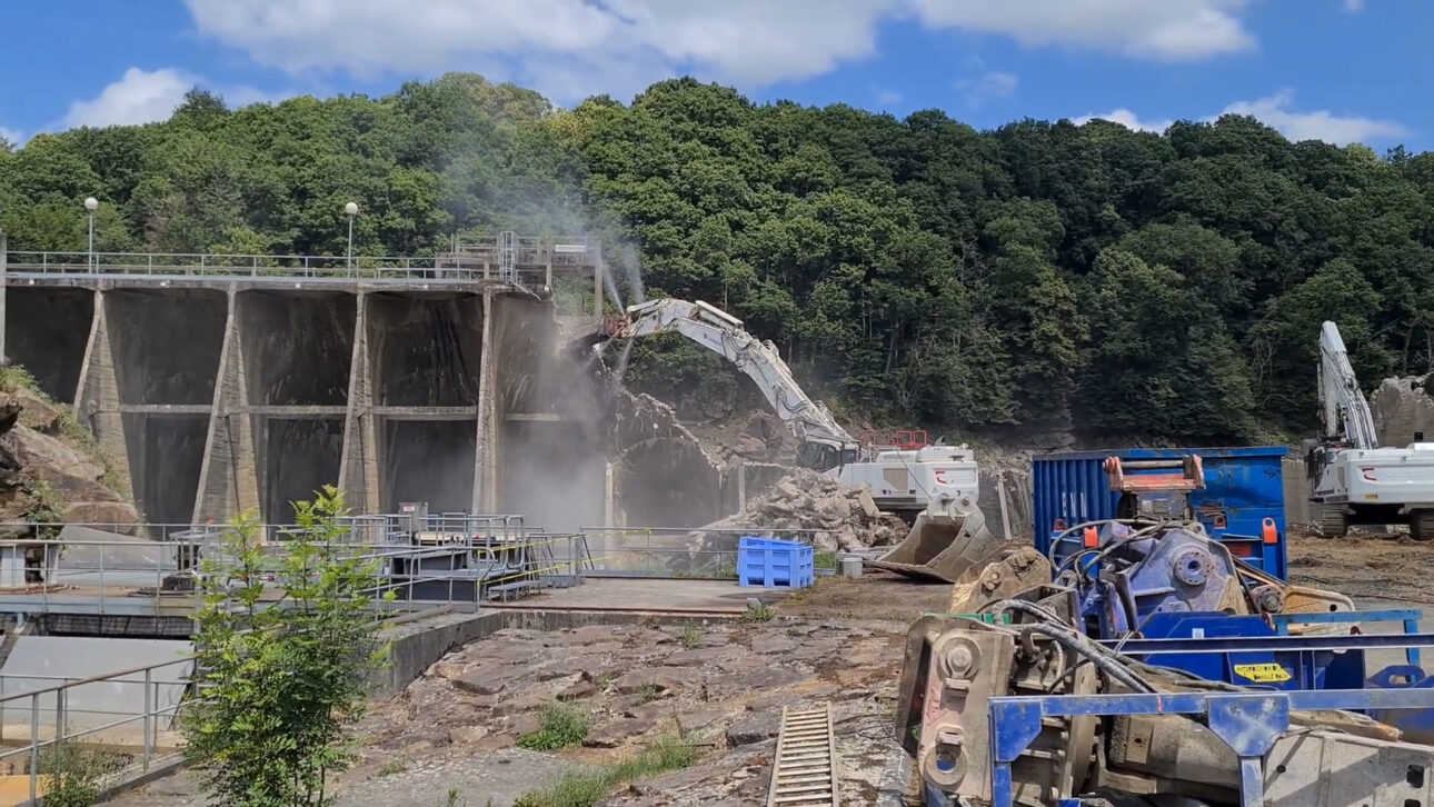 Por eso, la demolición se realizó en etapas. Excavadoras removieron partes de la estructura, se abrieron canales provisionales para controlar el flujo del agua y se utilizaron explosivos de forma controlada para fragmentar secciones críticas de las presas.