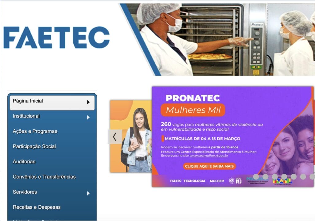 La Fundación de Apoyo a la Escuela Técnica (Faetec), en asociación con la Secretaría de Estado de la Mujer, tiene abiertas las inscripciones para cursos de Cualificación Profesional en la Baixada Fluminense. Mujeres en situación de vulnerabilidad social o víctimas de violencia tienen a disposición 260 vacantes en cursos gratuitos del Programa Pronatec Mujeres Mil. Las inscripciones ya están abiertas!