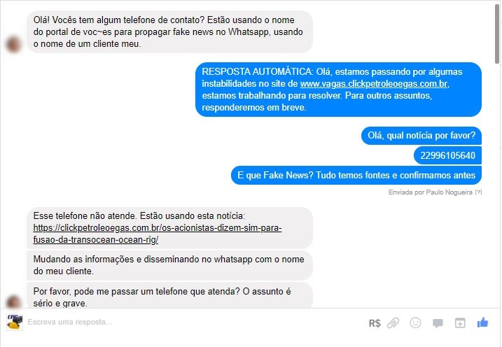 ¡La maldad humana no tiene límites! Están utilizando la marca Click Petróleo y Gas para difundir noticias falsas sobre una supuesta fusión entre la empresa Constellation y Transocean y que el contrato fue de US$ 5,7 mil millones. En realidad, el texto fue copiado del artículo » Los accionistas dicen “sí” a la fusión de Transocean – Ocean Rig«, solo que cambiaron el nombre de OCEAN RIG por la empresa Constellation y cambiaron el valor del contrato que fue de «US$ 2,7 mil millones» a US$ 5,7 mil millones. Resultado de esto: «Representantes de la empresa en Brasil nos contactaron hoy (4/12/2018)