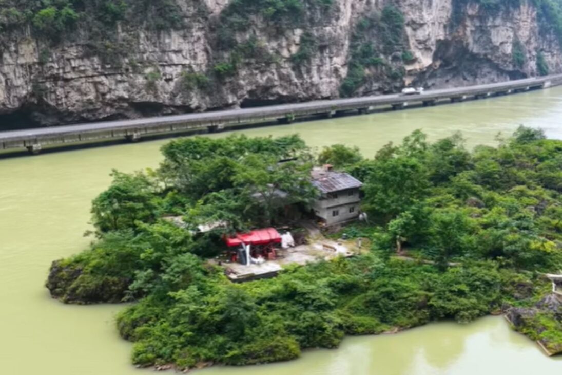El escenario se encuentra en el Gran Cañón del Río Jinkou, en Sichuan, región descrita como una de las más bellas de China, con acantilados rectos y vegetación densa. Aun así, la elección de la permanencia no fue turística, sino de ocupación real del espacio. La familia vive aislada en una isla porque encontró allí una combinación de seguridad, naturaleza y autonomía, incluso en un punto donde el río es profundo y el paisaje da la impresión de un aislamiento permanente.
