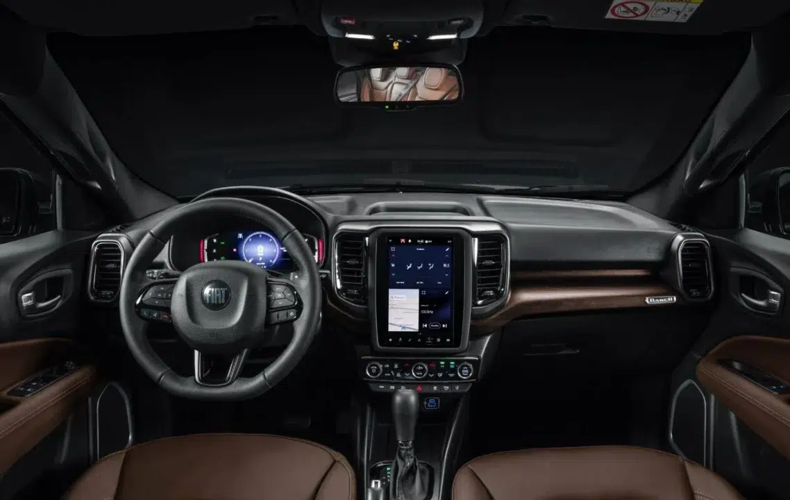 El interior de la Fiat Toro Ranch está repleto de tecnologías y cuenta con aire acondicionado digital dual-zone, central multimedia con pantalla de 10 pulgadas touchscreen, Apple Carplay Wireless y Android Auto Wireless, comandos de voz, MP3, Bluetooth, Radio AM/FM, Entrada auxiliar, puerto USB, GPS, Cargador por inducción, Computador de a bordo (distancia, velocidad media y tiempo de recorrido, My Car Fiat, entre varios otros.