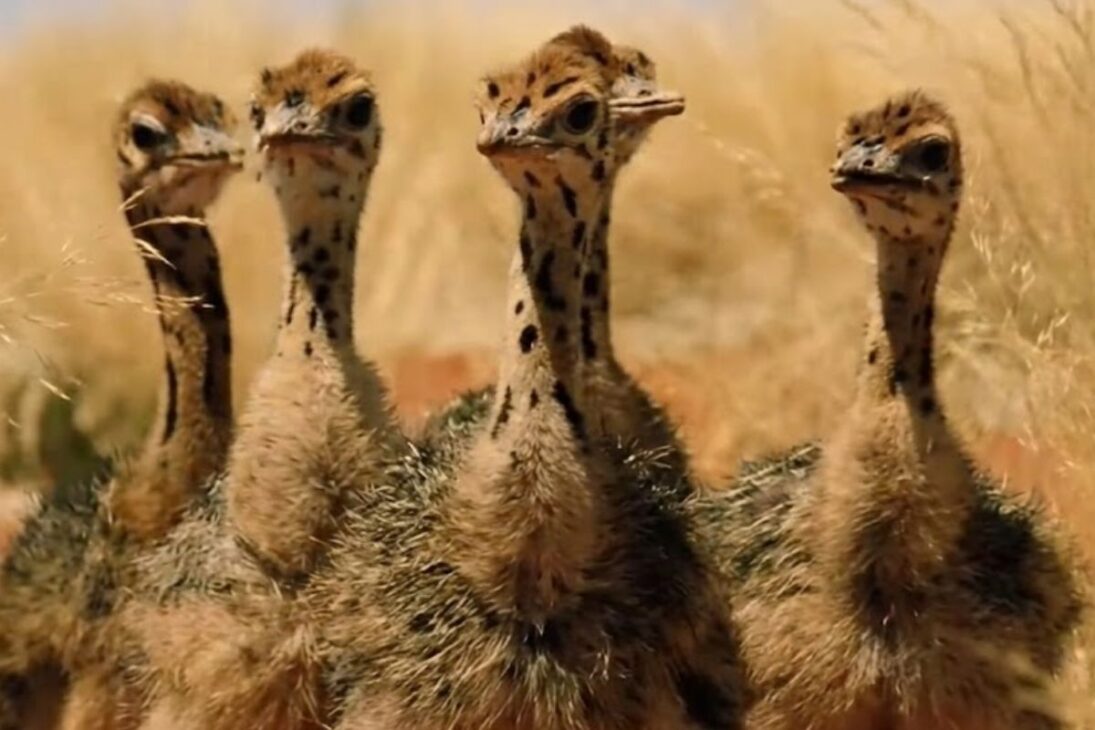 ¿Alguna vez habías imaginado a un polluelo de avestruz atravesando 40 °C sin agua a la vista, confiando solo en sus padres hasta encontrar una fuente escondida en el desierto?