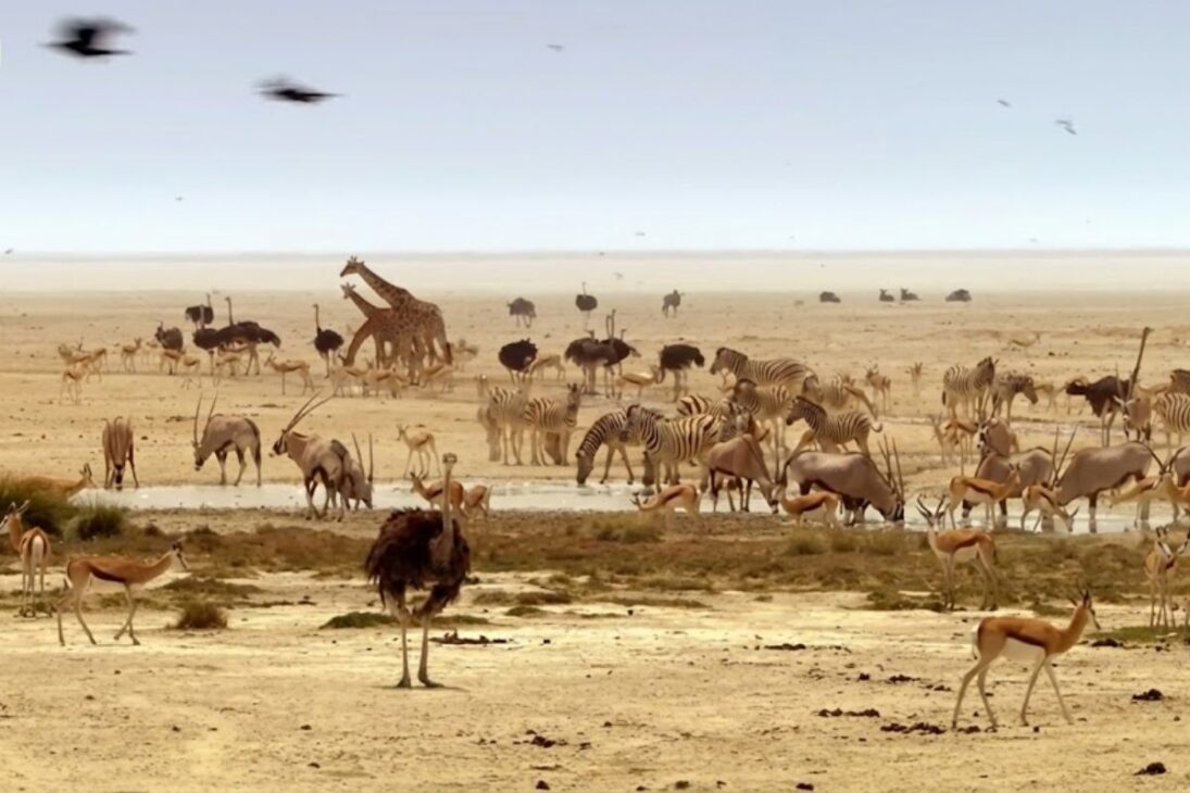 Con Pocos Días De Vida, Cada Polluelo De Avestruz Depende De Sus Padres Para Encontrar Humedad, Pero En El Kalahari El Agua Se Convierte En Una Mirada. La Marcha Por El Vacío Parece Suicida Hasta Que La Familia Llega A Etosha. Allí, Entre Barro Seco, Agua Dulce Brota Del Subsuelo, Como Un Milagro Al Final De La Tarde Abrasadora.