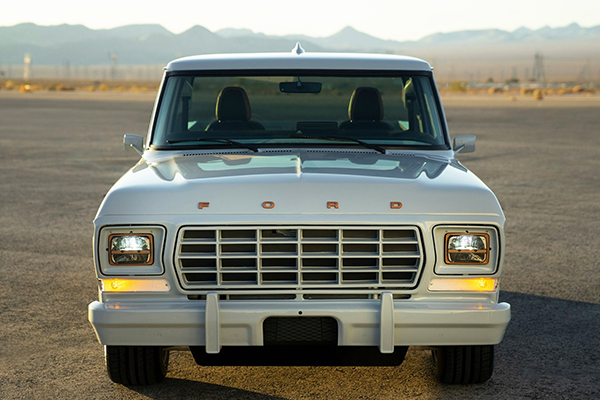Externamente, la pick-up F-100 Eluminator retro exhibe ruedas de aluminio de 19 pulgadas, una pintura exclusiva en gris con detalles en cobre y neumáticos de alta performance 275/45R19.
