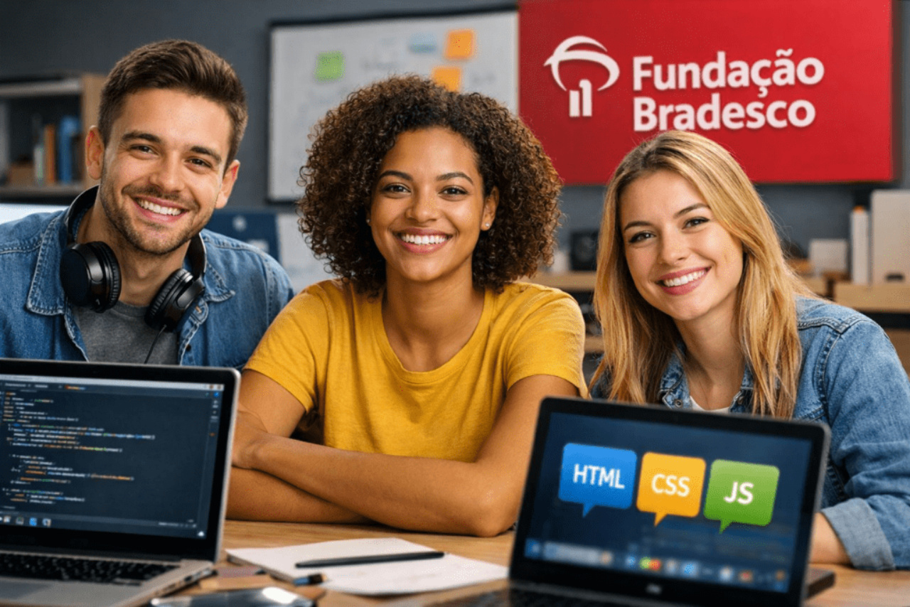 Quien quiere dar el primer paso en desarrollo Web encuentra una oportunidad: la Escuela Virtual de la Fundación Bradesco pone a disposición un curso online y gratuito que enseña a crear un sitio simple usando HTML, CSS y JavaScript, con una carga horaria de 2 horas y nivel principiante.