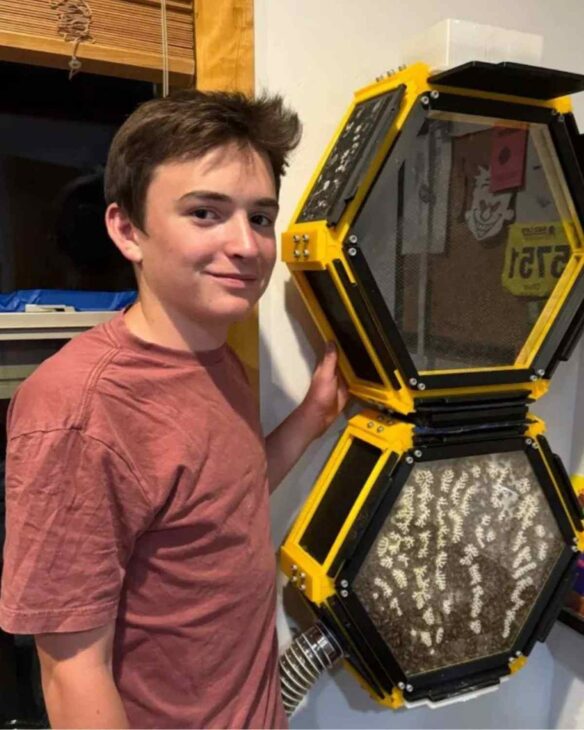 Mientras muchos adolescentes pasan el tiempo jugando o viendo videos, un joven británico decidió abrir espacio para 40 mil abejas dentro de su propia habitación. Usando impresión 3D y creatividad, construyó una colmena modular conectada a la ventana y ya cosecha resultados — literalmente