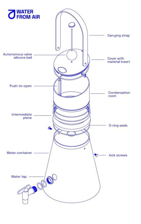 El proceso es simple: el aire entra en la botella y el MOF retiene el vapor de agua.