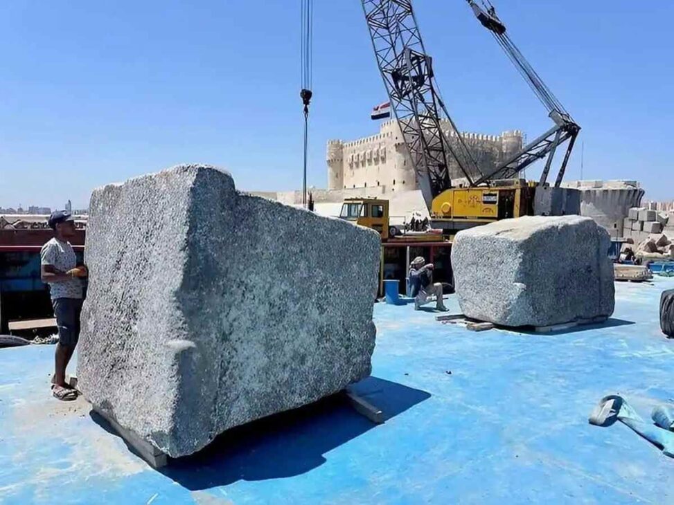 A la orilla de Alejandría, en Egipto, el equipo responsable de la operación recuperó 22 bloques inmensos de piedra.