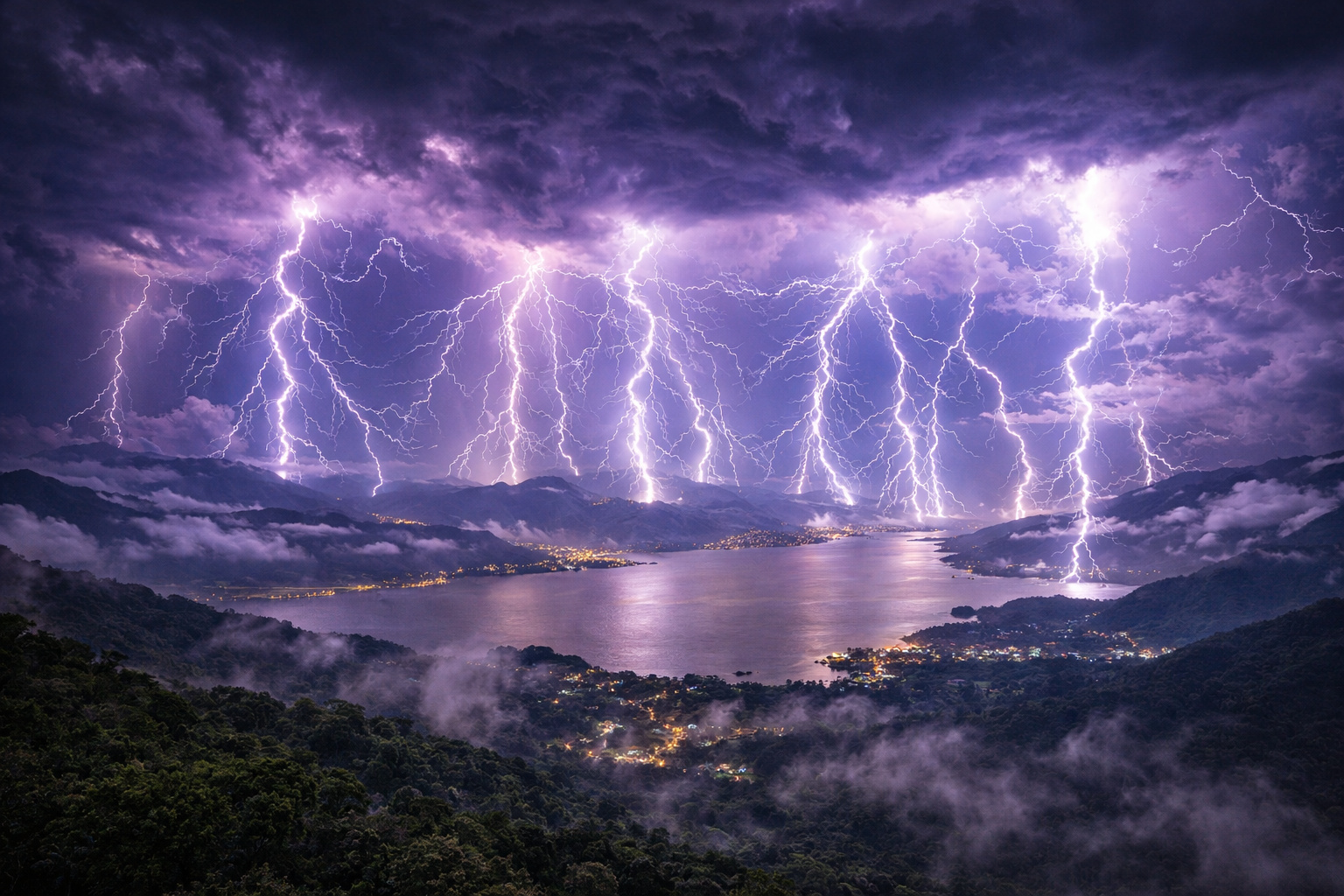 En Venezuela, una región alrededor del Lago Maracaibo registra la mayor concentración de rayos de la Tierra, con alrededor de 250 descargas por km² al año y tormentas que iluminan el cielo durante hasta 297 noches, impulsadas por la humedad del Caribe y por montañas que atrapan el aire.