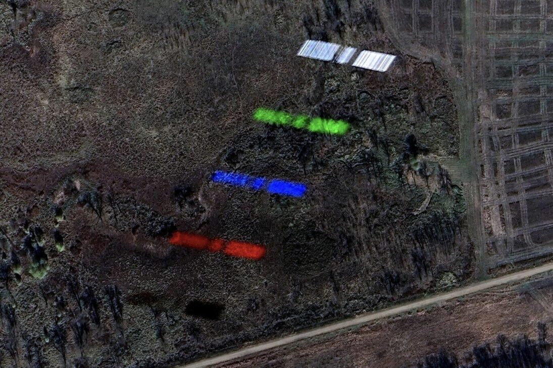 En medio de las imágenes, cinco siluetas coloridas del mismo objeto en movimiento rápido destacan contra el suelo estático, revelando detalles únicos sobre la captura por satélites en órbita baja.