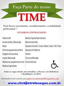 Es necesario que todos tengan las qualificações, formaciones o experiencias necesarias para ejercer los cargos en la obra, lo interesante de estas oportunidades es que también son extensibles a personas con necesidades especiales y rehabilitados del INSS, a continuación se presentan: