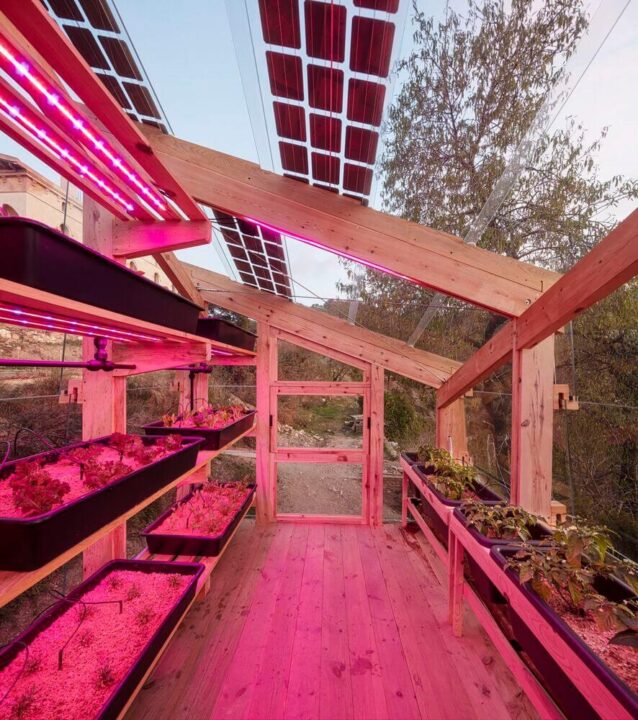 El techo cuenta con paneles de energía solar en un patrón cuadrado, mientras que las ventanas traseras y delanteras pueden abrirse para que la ventilación se realice de manera natural. Un sistema de riego mejorado con nutrientes también contribuye a impulsar el crecimiento de las plantas dentro del invernadero solar.