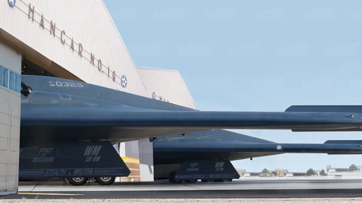 El B-2 Spirit, que realizó su primer vuelo en 1989, es un componente crucial del arsenal de ataque de largo alcance de los Estados Unidos. Su diseño de ala voladora, sin fuselaje ni cola, lo hace casi invisible a los radares enemigos. Midiendo 52 metros de envergadura, se guarda en hangares enormes, con 38 metros de longitud, 76 metros de ancho y 17 metros de alto, para proteger su material absorbente de radar.