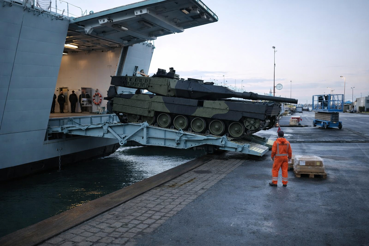 Como transporte de blindados: la cubierta acomoda hasta 7 tanques Leopard II — vehículos de 62 toneladas — o 55 vehículos militares más pequeños. Con la rampa ro-ro, el embarque y desembarque se realizan sin equipo adicional.
