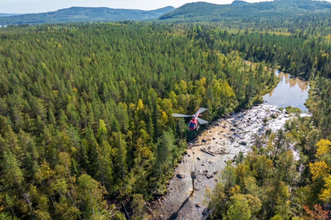 La operación de retorno de arena y grava en el Abramsån fue financiada por EKOEnergy, permitiendo que el proyecto avanzara hacia una escala de intervención que exige logística aérea y planificación precisa de los puntos de deposición.