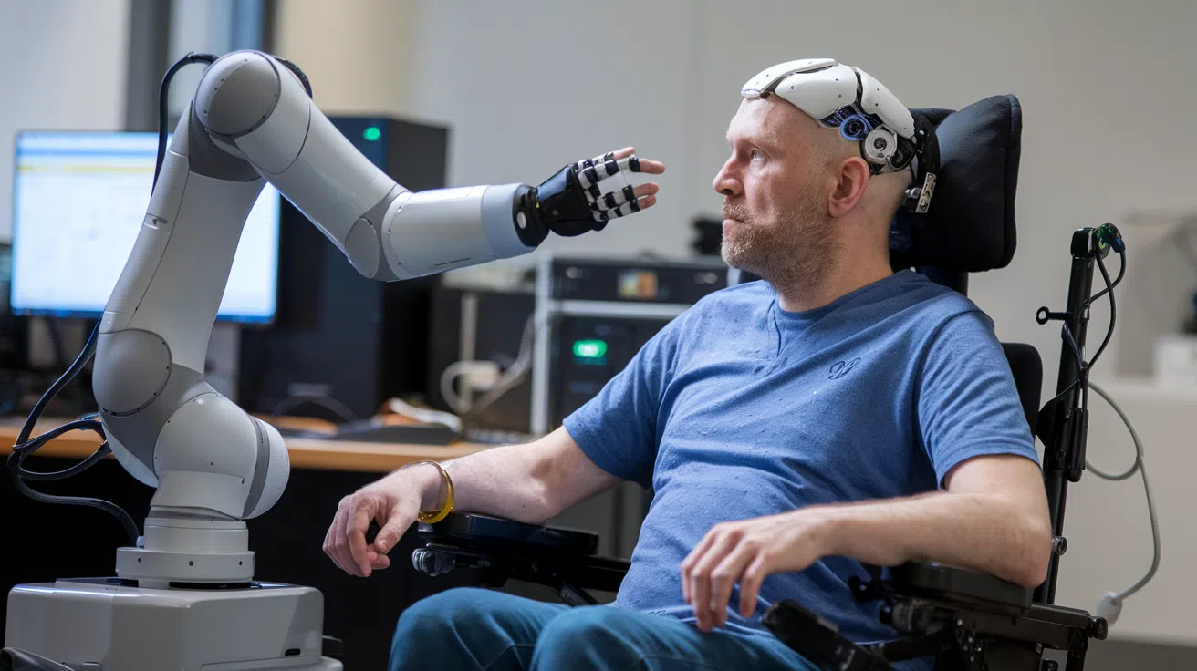 Hombre con parálisis logra hito histórico que puede revolucionar el uso de la inteligencia artificial en la medicina. Participante de estudio mueve brazo robótico solo con el pensamiento.