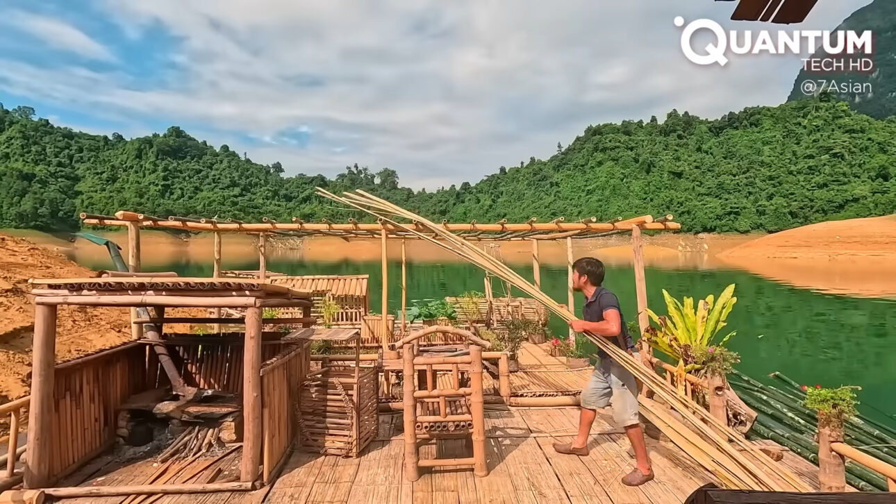 Un hombre decidió romper completamente con la vida urbana, abandonar la infraestructura de las ciudades y desaparecer en la selva de Vietnam. En apenas un año, viviendo de forma totalmente aislada, logró algo que parece improbable: construyó solo una villa flotante autosuficiente, erguida sobre un lago remoto, usando casi exclusivamente bambú, madera, técnicas tradicionales de carpintería y recursos naturales disponibles a su alrededor.