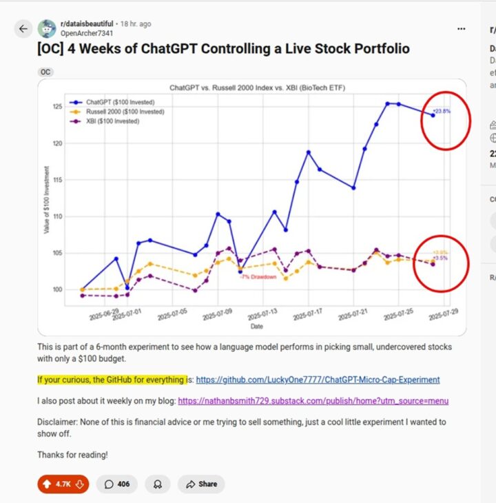 Esto indica que, al menos a corto plazo, el ChatGPT hizo buenas elecciones basadas en la información que recibió.