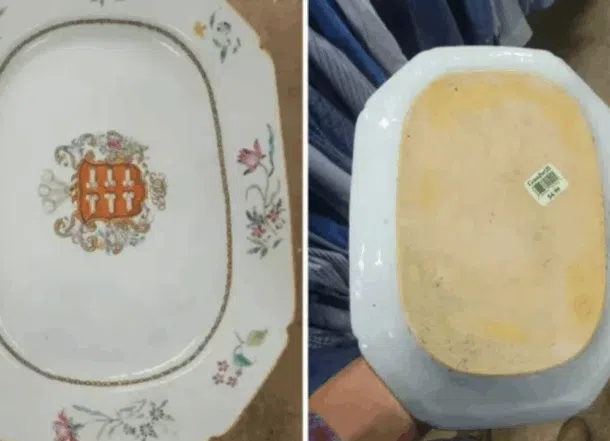 La investigación reveló que la porcelana es una «bandeja rectangular achaflanada heráldica china de exportación» del período Qianlong de la dinastía Qing, datada alrededor de 1755.