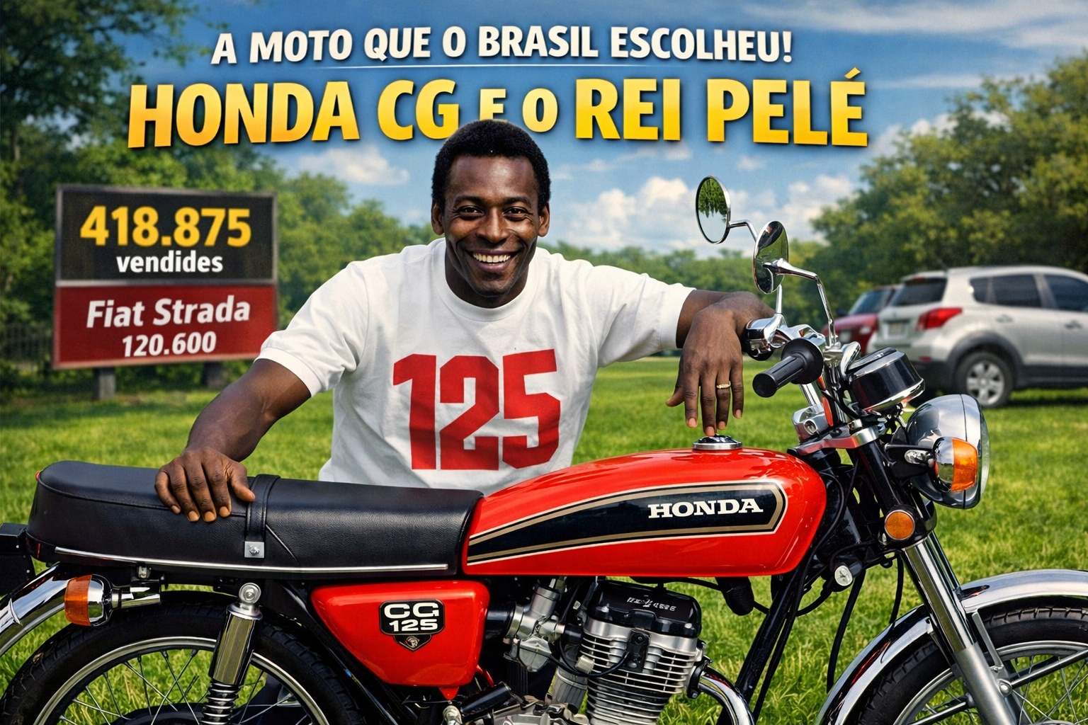Al principio, la Honda CG era solo una novedad más tratando de hacerse un espacio en Brasil. El escenario cambió cuando Edson Arantes do Nascimento comenzó a circular con el modelo, creando una identificación inmediata con el público. El impacto fue natural y poderoso. Si el Rey usaba, el brasileño confiaba.