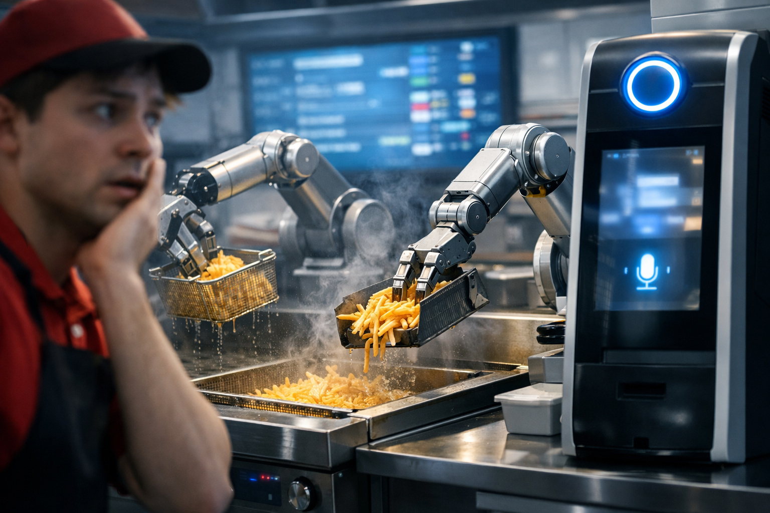 Robots asumen freidoras, atienden a clientes por voz y ponen en jaque el futuro de cocineros y atendientes mientras redes de comida rápida adoptan IA que automatiza hasta el 70% de las tareas y rediseña silenciosamente el trabajo dentro de las cocinas.