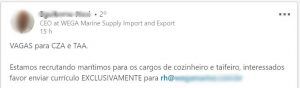 Vale la pena destacar que la MS CREW también está con un proceso selectivo similar y aún está recibiendo currículos, solo que en lugar de Taifeiro, ellos están contratando Marineros de Convés y Cocineros. Accedan a más detalles aquí, puede ser otra oportunidad para ingresar en el offshore y marítima.