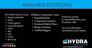 ¡Contratando Ahora! Únete a los Equipos Marítimos DSV / MPSV y Equipos de Construcción Offshore de Hydra, Las Convocatorias Serán Inmediatas