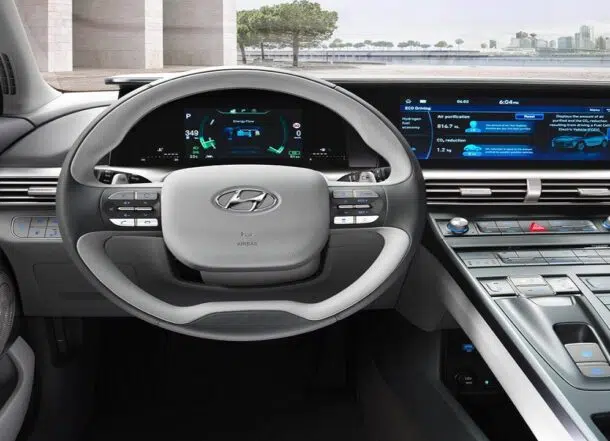 A pesar de haber sido lanzado en 2018, el Hyundai Nexo continúa siendo un modelo tecnológicamente avanzado. Cuenta con una pantalla multimedia de 12,1 pulgadas y un panel digital de 10,25 pulgadas, garantizando alta conectividad y facilidad de uso. La consola central elevada agrupa una serie de comandos, ofreciendo una sensación futurista al conductor.