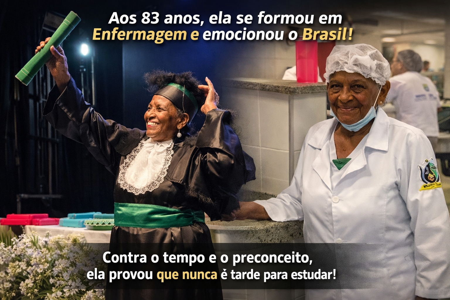 Cuando mucha gente cree que estudiar es cosa solo de jóvenes, una anciana de más de 80 años decidió probar exactamente lo contrario. En la víspera de cumplir 84 años, doña Osmarina Duarte de Sousa vivió uno de los momentos más significativos de su vida: la graduación en técnica en enfermería, un sueño que llevó durante décadas y que parecía demasiado lejano para hacerse realidad.