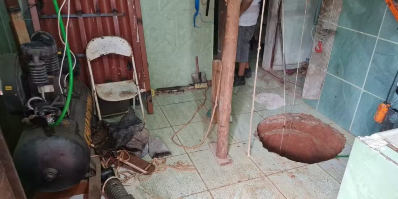 La excavación se realizó en el área de servicio. El agujero, descrito como un círculo de cerca de 90 centímetros de diámetro y aproximadamente 40 metros de profundidad, había sido abierto durante meses — en una versión, por seis meses.