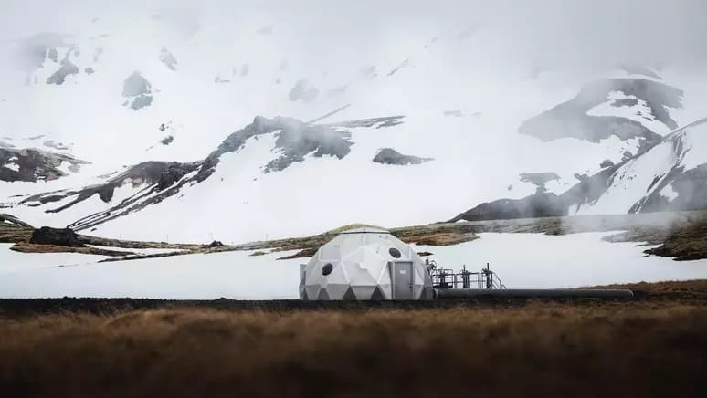 La extraña imagen, el toque final en un paisaje que parece extraterrestre, es única, no solo por su apariencia, sino también por su función: se trata del primer sistema viable, en el mundo, capaz de capturar dióxido de carbono (CO) del aire y almacenarlo bajo la tierra.