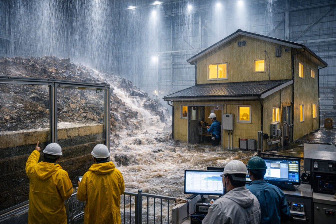 Una tormenta capaz de derribar montañas puede comenzar con el apretar de un botón. En Japón, científicos construyeron un simulador gigante que reproduce algunas de las lluvias más intensas ya registradas en el planeta. No es pronóstico del tiempo. Es ingeniería pesada aplicada a la supervivencia.