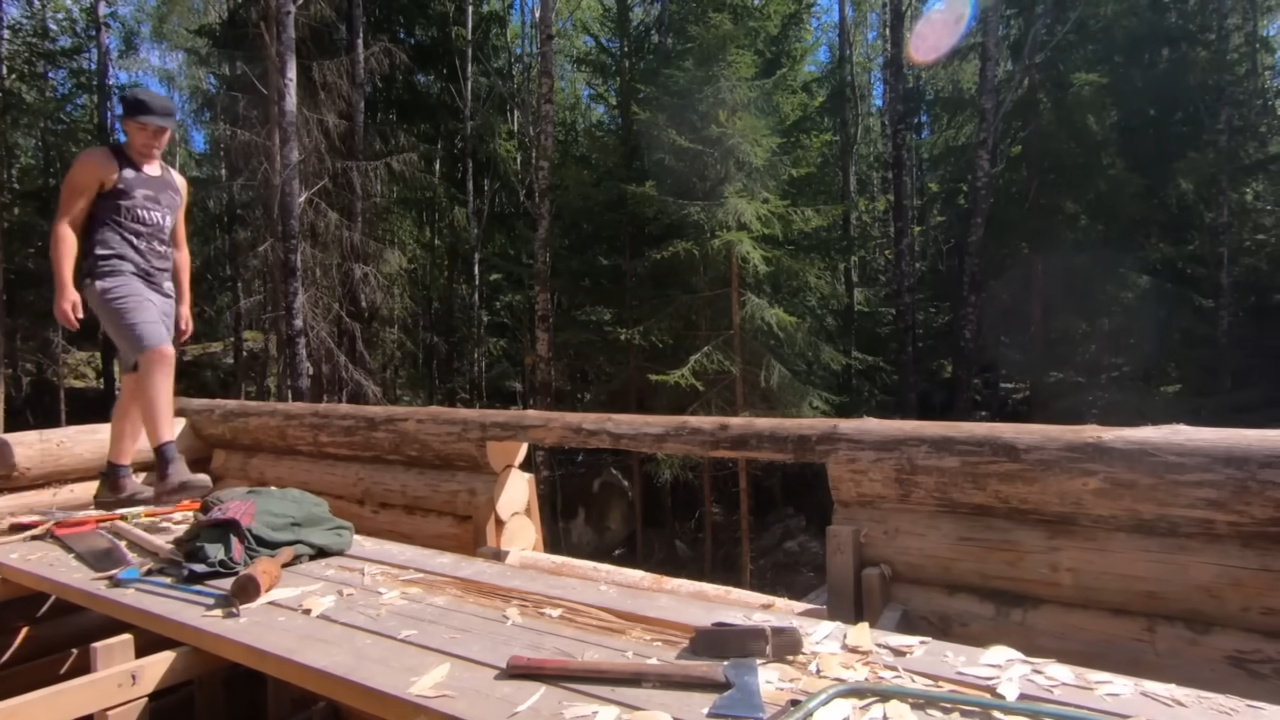 Durante Cerca De Tres Años, Vivió Prácticamente Solo En El Bosque. Cortó Árboles Con Hacha Y Sierra Manual. Peló Troncos En El Calor Del Verano. Levantó Paredes Tronco Por Tronco, Trabajando Con Encaixes Tradicionales. Construyó Techo Con Corteza De Abedul, Instaló Ventanas Y Organizó El Interior Con Mobiliario Básico Hecho Por Él Mismo.